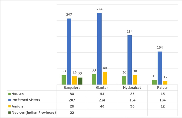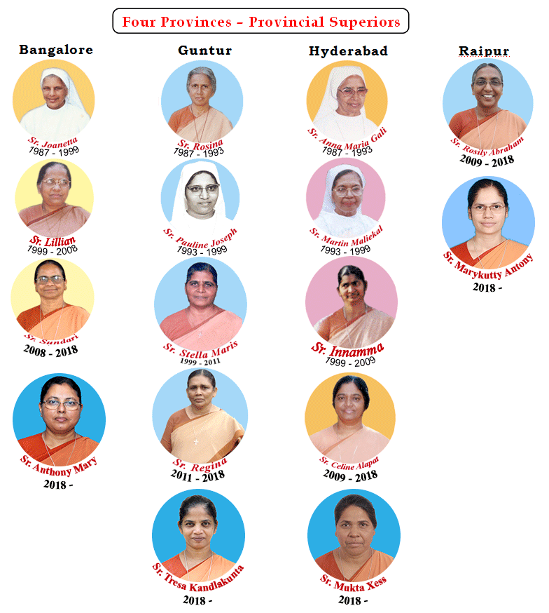 Archdiocese of Hyderabad, Diocese of Nalgonda, Delhi, Jamshedpur, Varanasi, Nagpur, Raipur, Raigarh, Ranchi, Bhagarpur, Bertia and Gorakhpur |