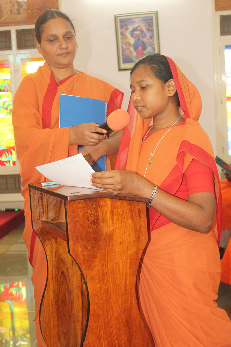 The event began with a procession as two of our sisters marched forward with the lighted lamps along with their parents, priests, Provincial Superior and her council and Most. Rev. Ch. Bhagyaiah, D.D Bishop of Guntur diocese and followed by con-celebrants.