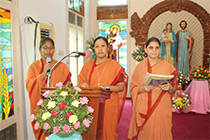 Sr. Tresa K the Provincial Superior greeted the sisters and welcomed them to be the permanent members of the Congregation of JMJ sharing everything in common. At the end of the mass the Bishop handed over the lighted candles to the two sisters wishing them to be the light of the world and finally the professed sisters entrusted themselves to the patronage of Jesus Mary Joseph by praying the prayer of Consecration to Holy Family followed by a Holy Family song.